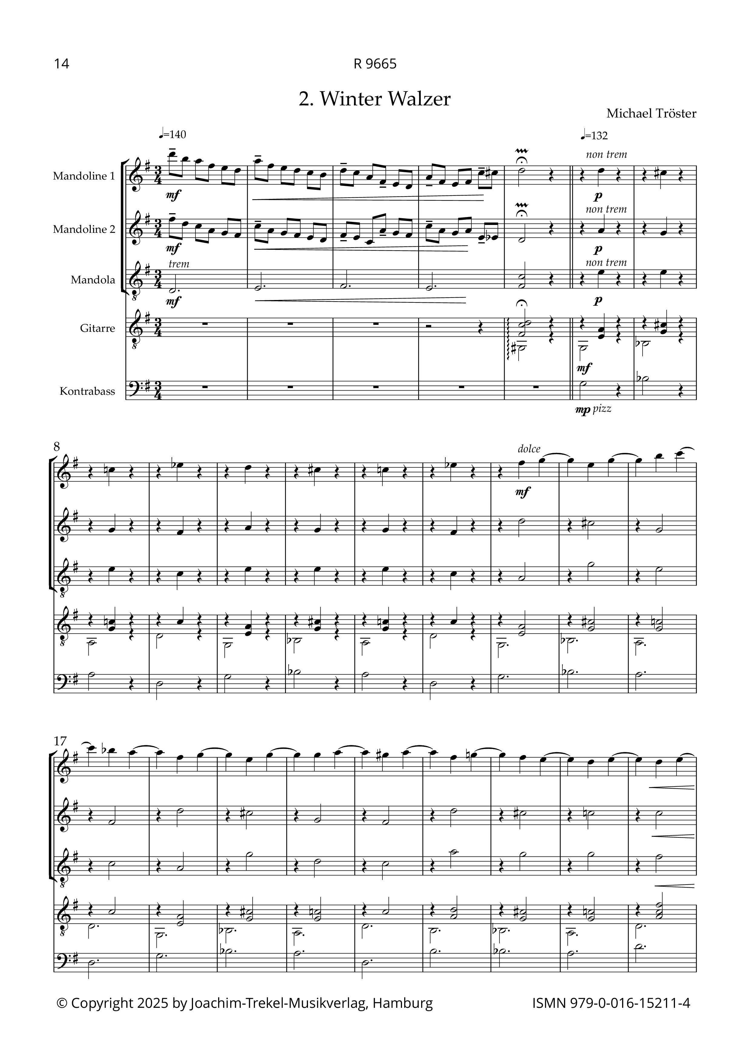 Der zweite Satz “Winter Walzer” lässt die eleganten Pirouetten von schlittschuhlaufenden Pärchen auf einem gefrorenen See erahnen.