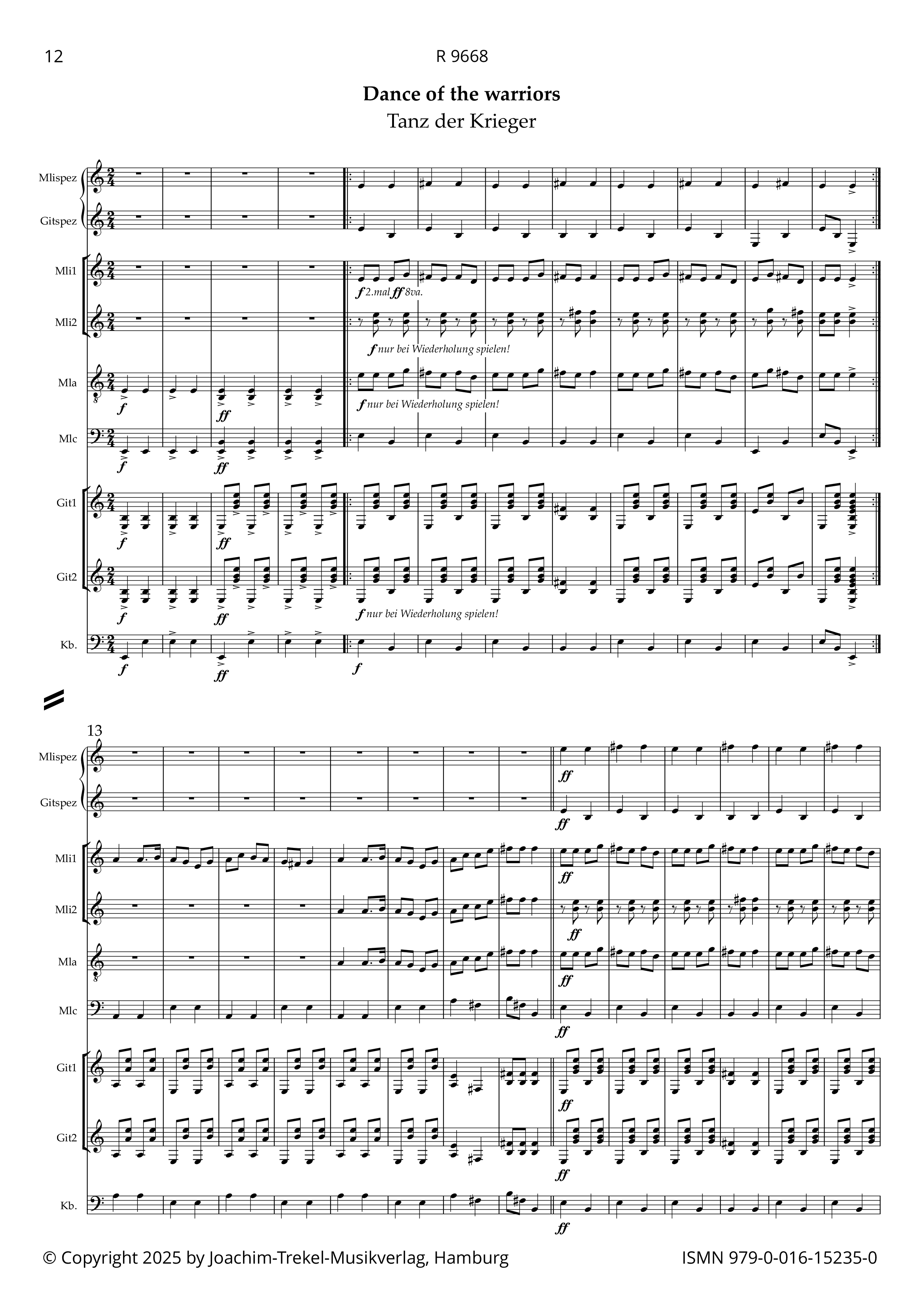 ausgewachsenen Zupfensemble musizieren können. Daher wurde die Partitur um jeweils eine "Beginner"-Stimme Mandoline und Gitarre ergänzt. Die Aufführung des Werkes ist aber