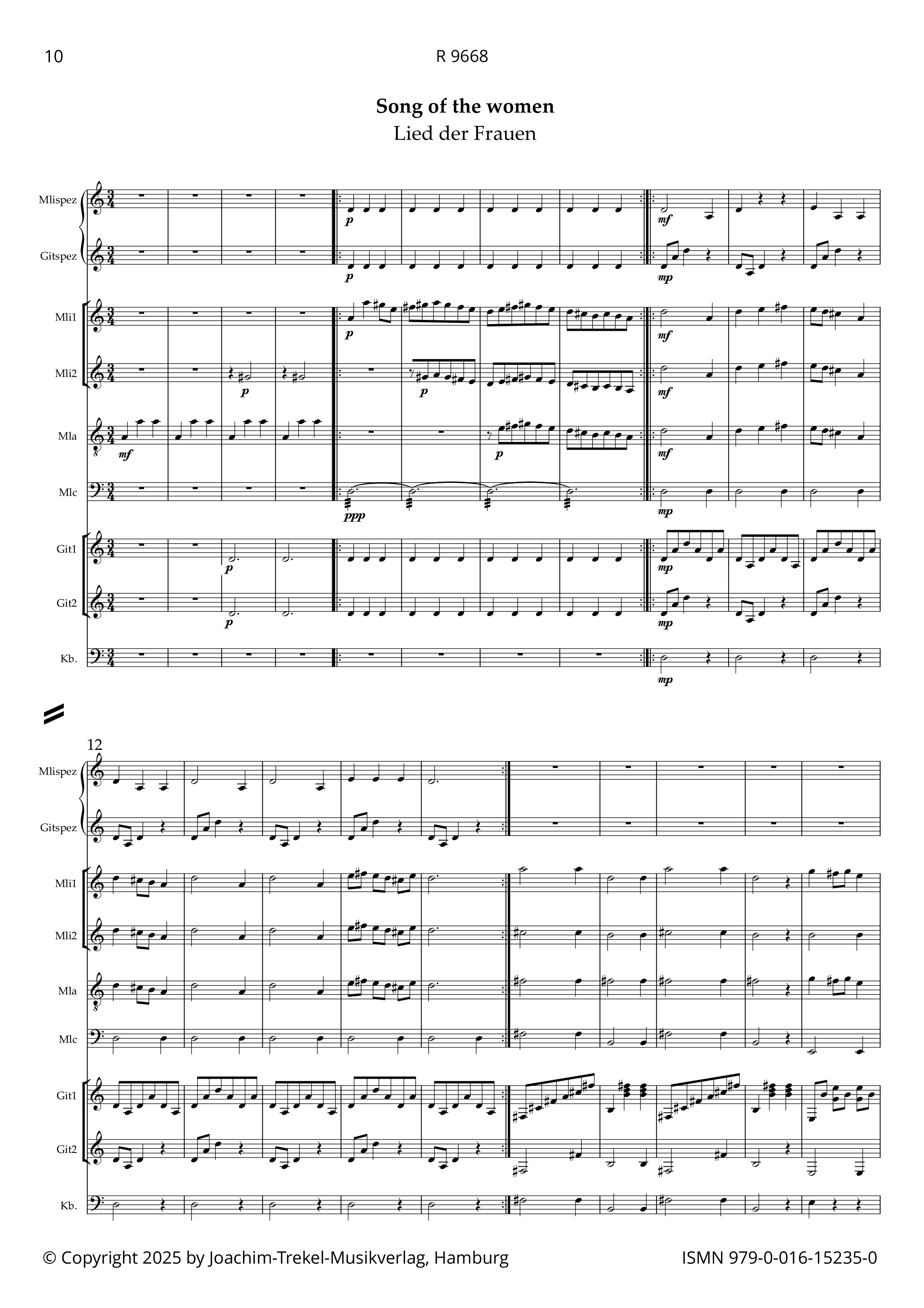 ausgewachsenen Zupfensemble musizieren können. Daher wurde die Partitur um jeweils eine "Beginner"-Stimme Mandoline und Gitarre ergänzt. Die Aufführung des Werkes ist aber