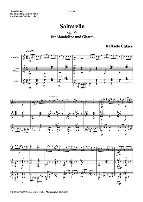 Die Mandolinenstimme ist mit allen Vortragsbezeichnungen und Fingersätzen des Erstdrucks von Calace enthalten. Neben der gesetzten ursprünglich handgeschriebenen Gitarrenstimme von Calace, die mit seinen originalen Fingersätze versehen ist, enthält diese Ausgabe eine zusätzliche von den Herausgebern arrangierte Gitarrenstimme, deren Anliegen es ist, den musikalischen Gehalt des Klavierparts möglichst umfänglich wieder zu geben.