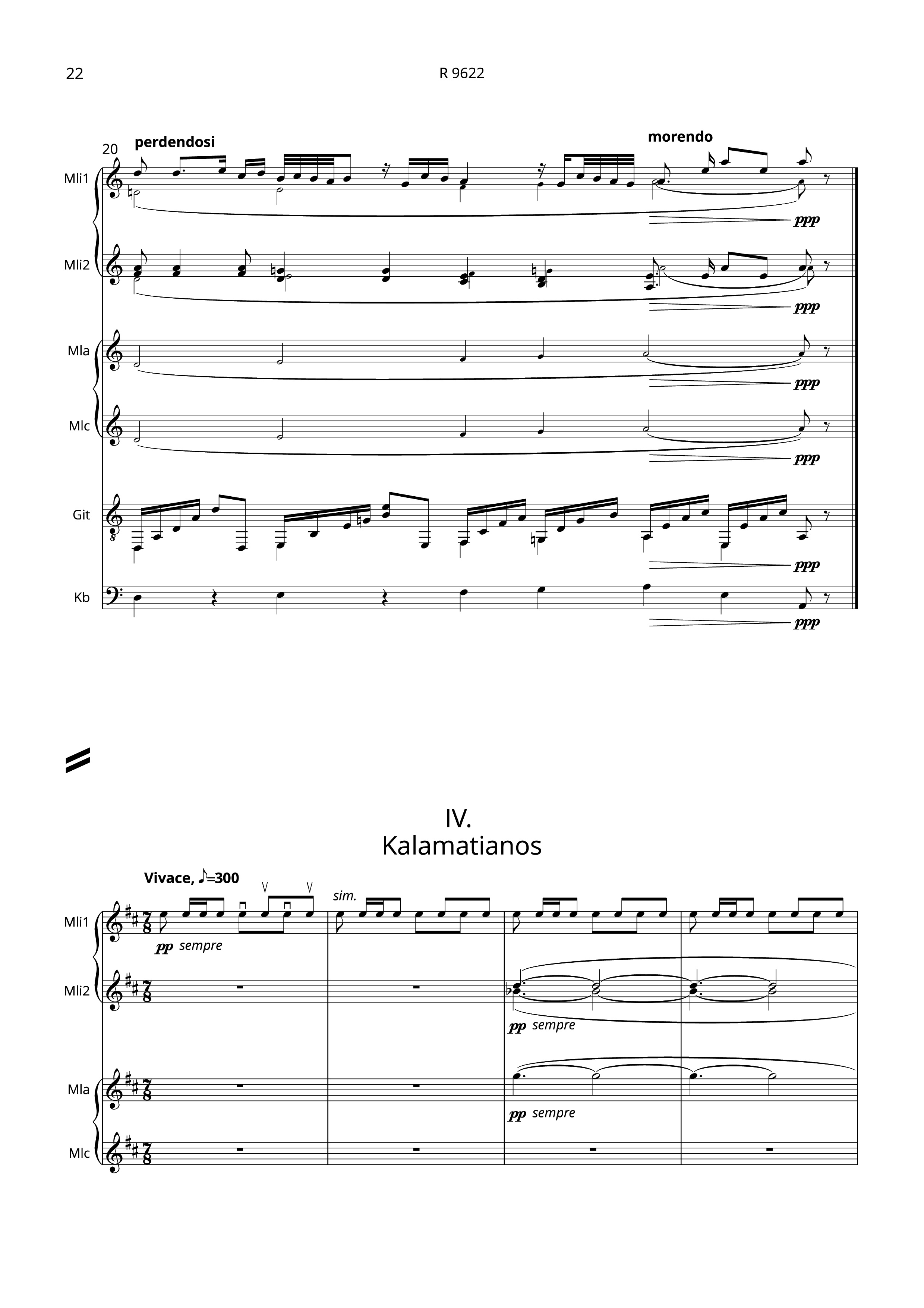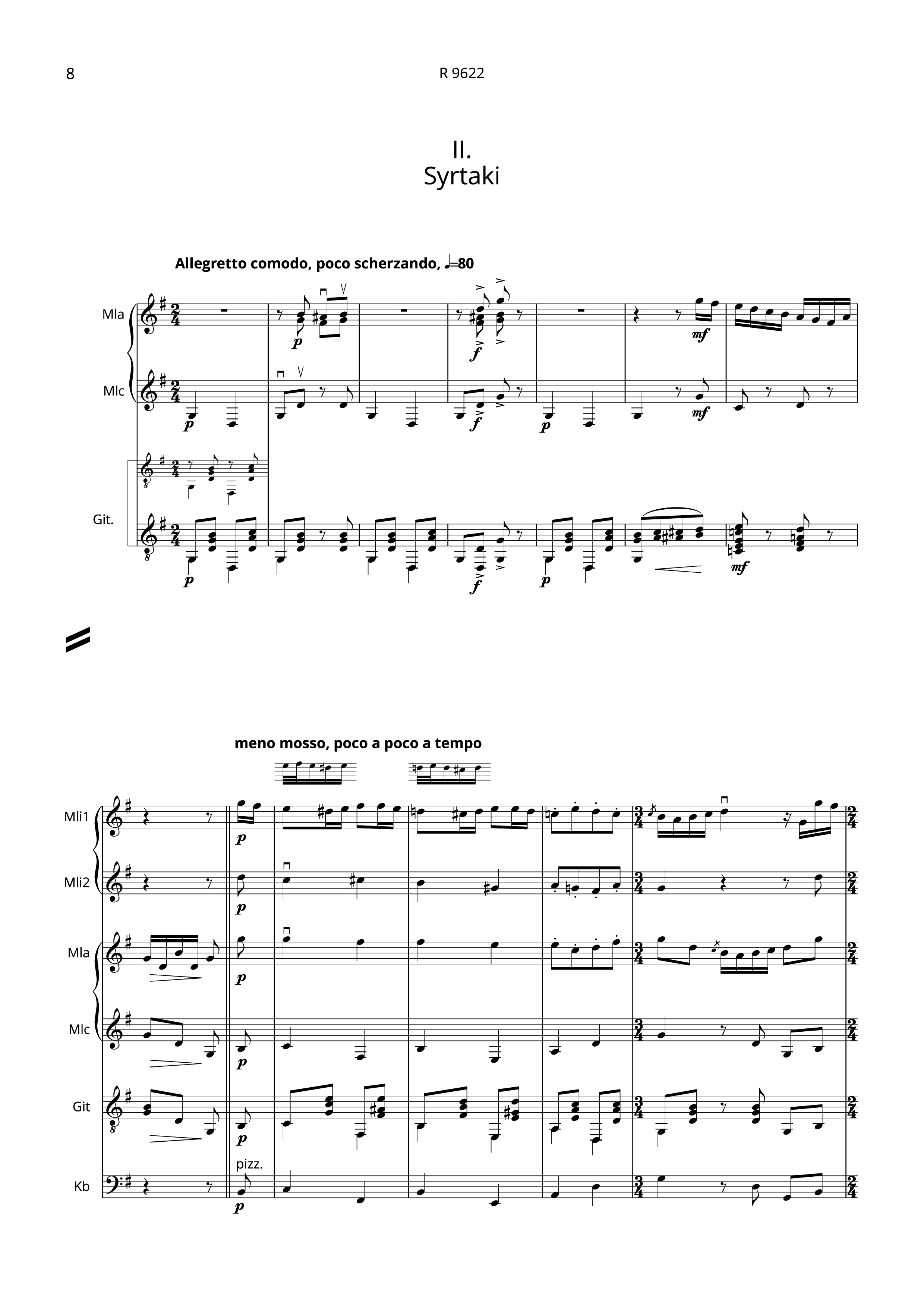 Bei den Sätzen II-IV handelt es sich um Originalkompositionen im Stile griechischer Volksmusik, wobei der letzte